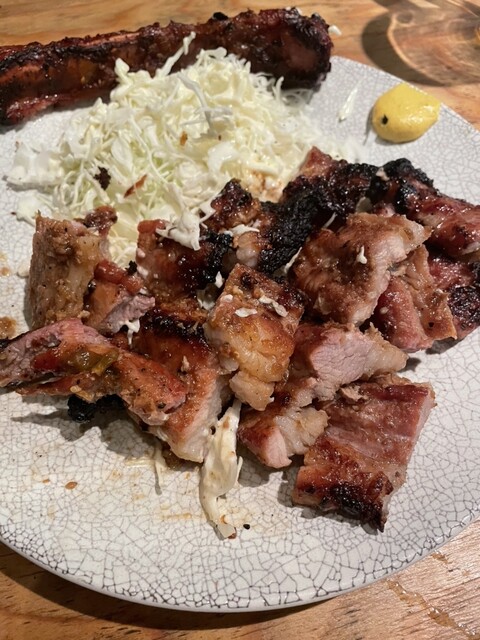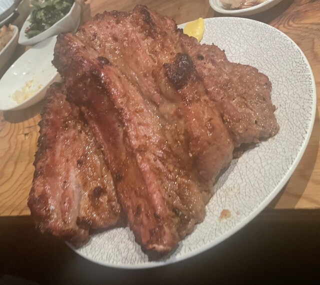 照片中的かぶきんとん燒是大型的排骨,外觀氣派,但切得...
