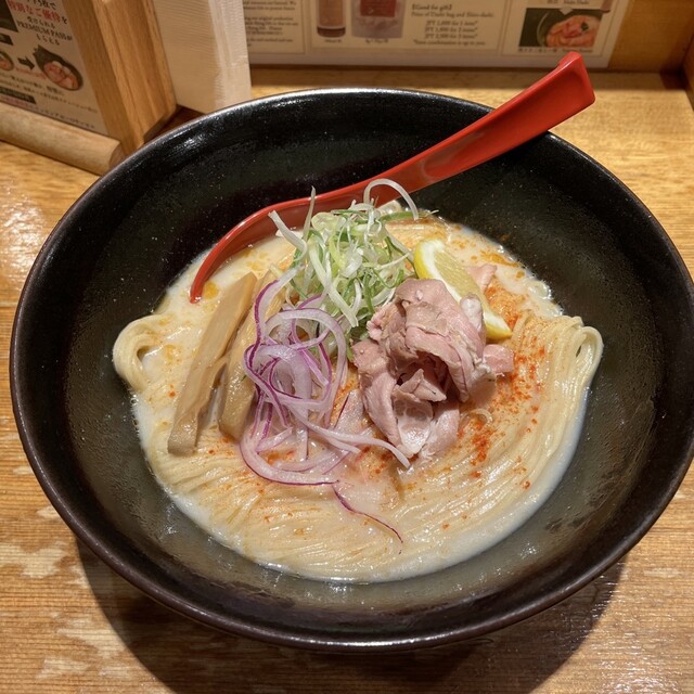 【每天營業至凌晨4點半】白木的吧檯上,瓷磚交織出美麗的陰影。這是一家以“和”為基調的成人拉麵店。使用奢華的“燒鰹”製作的中濃鹽拉麵是最受歡迎的選擇。最後可以將剩餘的湯底加入“國產越光米”的白飯,製作成燒鰹高湯茶泡飯,讓您能夠享受最後一滴的美味。...