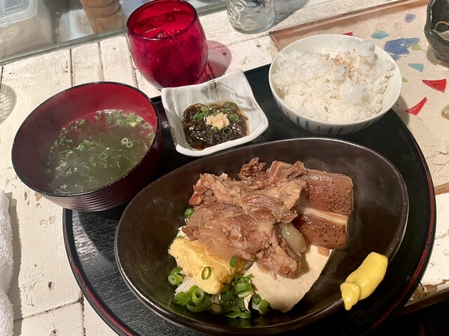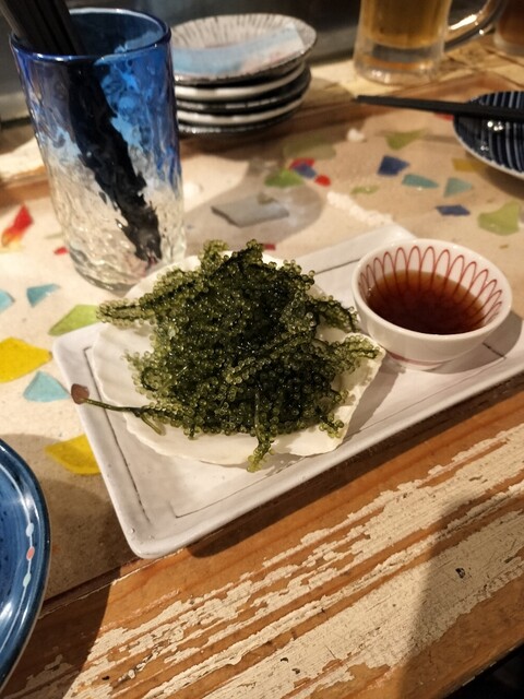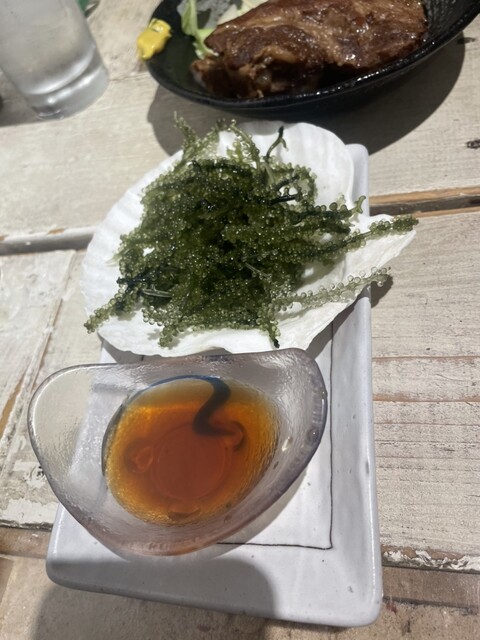 店鋪位於地下,但店內氛圍明亮,還有用漂亮的琉球玻璃杯盛裝的泡盛,以及海葡萄和豬耳朵等沖繩料理套餐,非常棒。