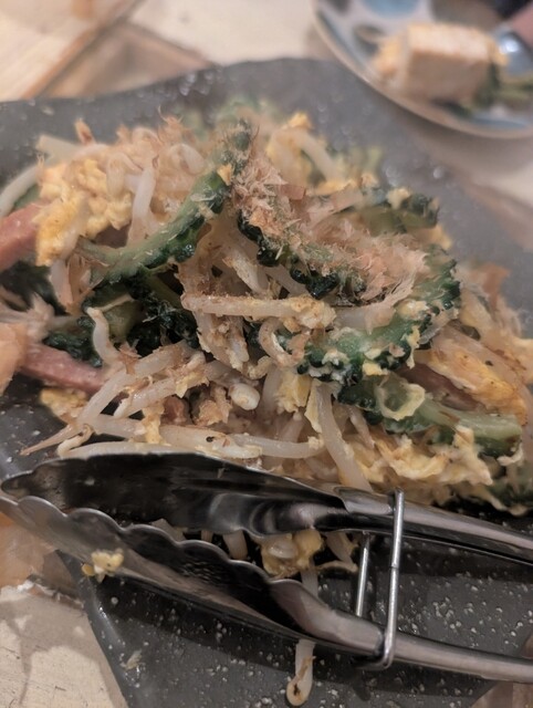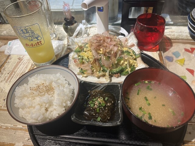 午餐菜單上有經典的苦瓜炒蛋、胡蘿蔔絲和沖繩麵等,價格比起這個地點而言非常實惠,讓人感到很滿意!