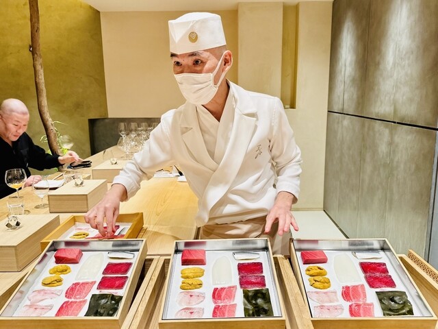 預約等了4年。使用新米製作的米飯水分充足且柔軟,技術高超的握壽司以不留指痕的柔和觸感握製而成。香檳、葡萄酒、十四代等珍貴的高級酒品不斷上桌,讓人享受壽司與酒的完美搭配,最後以抹茶作為結尾。這是值得一生...