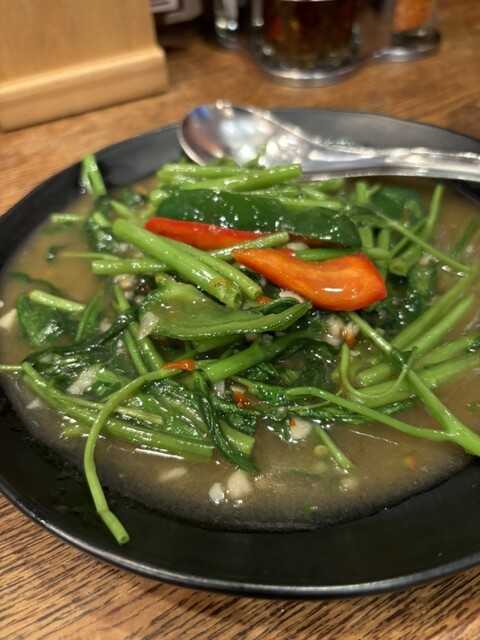 平日的星期二14點。我今天點了每日特餐,豬肉蝦醬炒(940日圓)。今天廚房裡的廚師不是農先生,而是一位年輕的廚師。首先上來的湯味道不太像泰國的風味,而且有點鹹。隨後,飯菜陸續上桌。...查看詳情