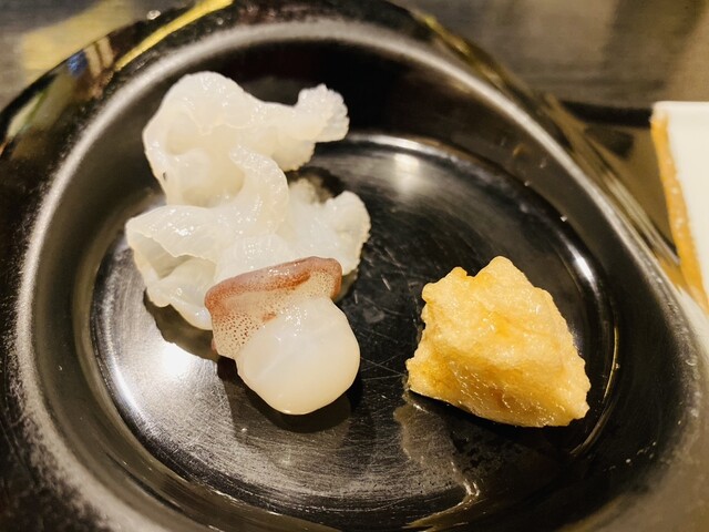 這裡的章魚刺身是一般壽司店不會出現的刺身。沾上鹽品嚐,味道非常...