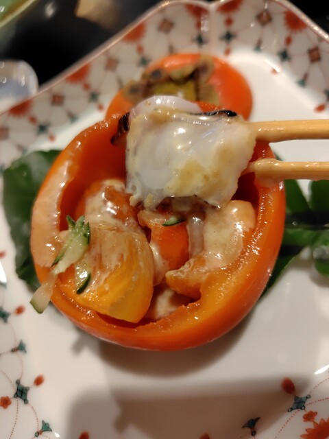這次的菜單是「蛸五道菜」,其中包含了柿子和蛸的甜點,真是精選的美味。