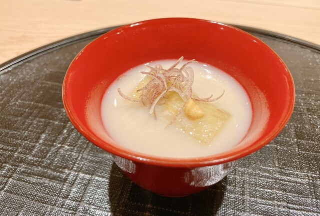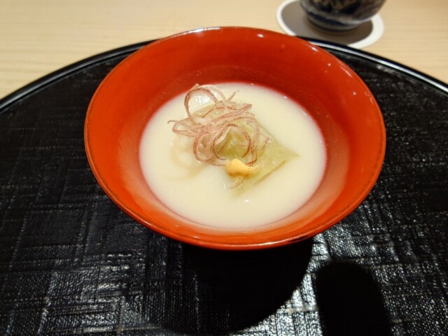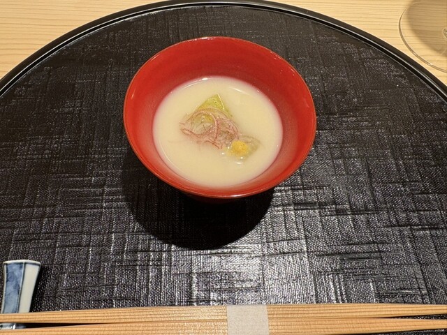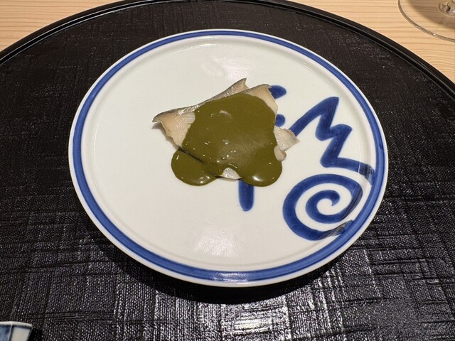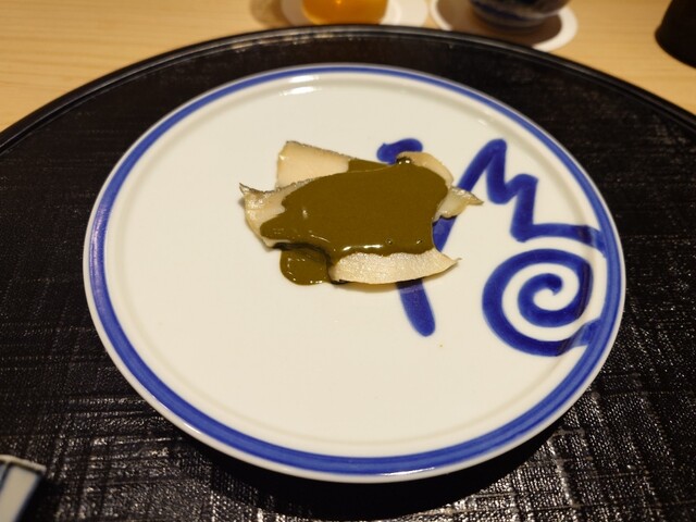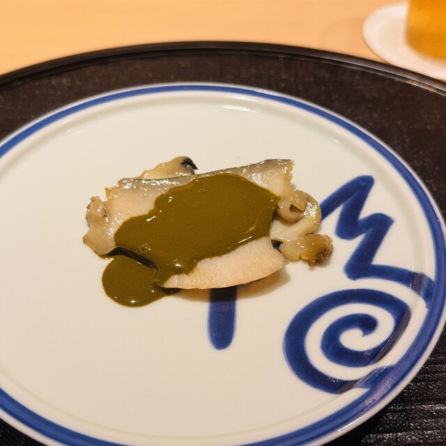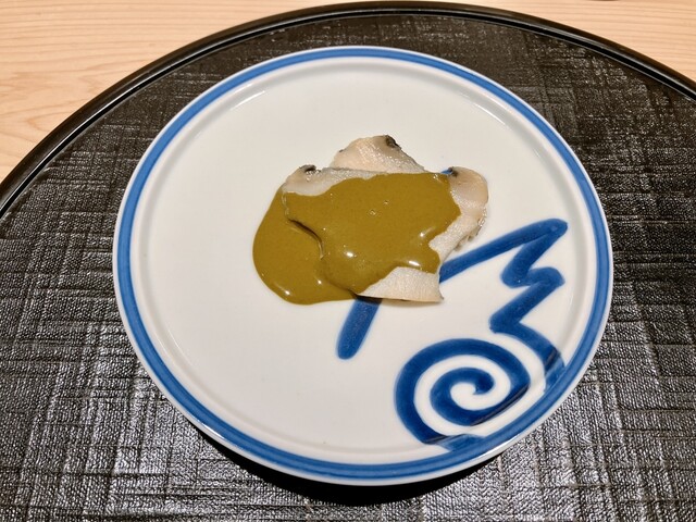 這個季節的無花果白和え,真是太棒了。最後的黑鮑,與其他店相比更加清爽,口感也很好,沒有比這更好的鮑魚了。
