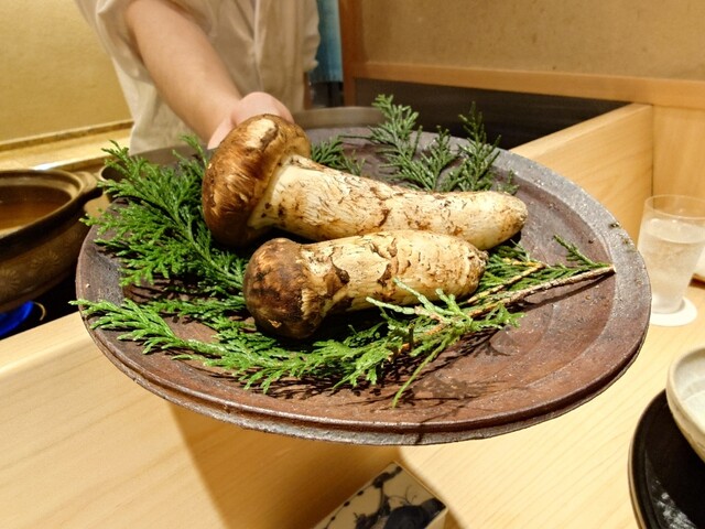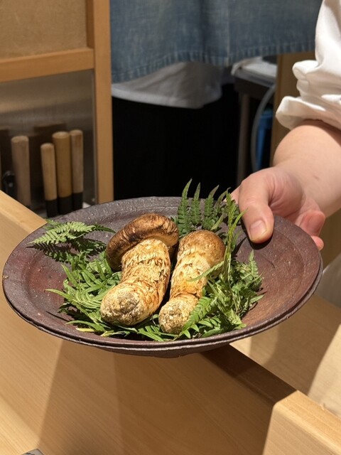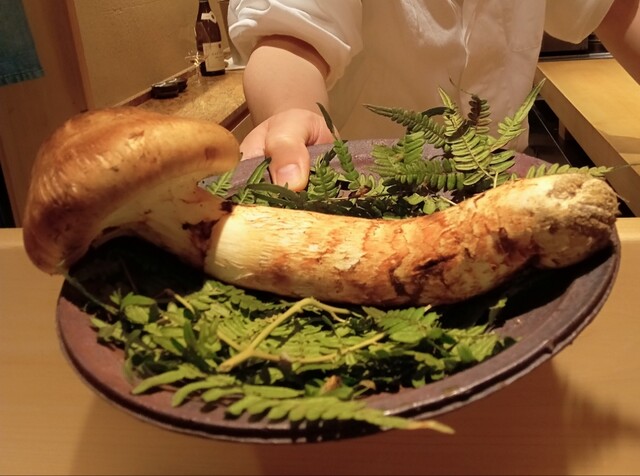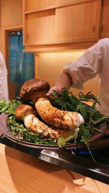 10月的星野先生。出現了幾道使用松茸的料理,似乎在不斷嘗試如何引出松茸的香氣,以及香氣達到最大值的瞬間。
