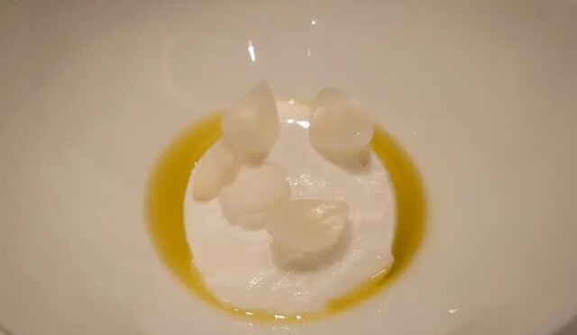 羊奶慕斯、茄子與鵝肝的壓縮料理、以及蛋白霜冰淇淋,還有濃縮海水等,讓我印象最深刻的還是羊奶慕斯!