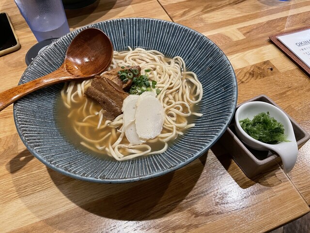 我點了沖繩麵的波音麵(全部加料)(1100日圓)。所謂全部加料,就是指配...