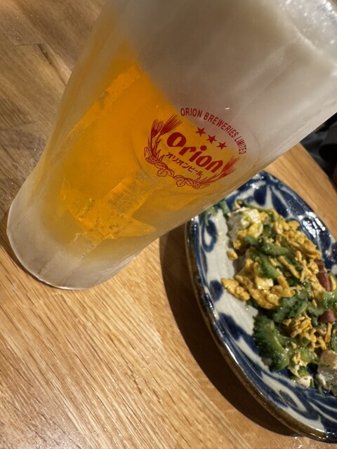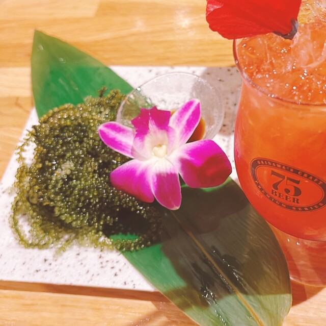 大家都在享用奧隆啤酒和雞尾酒搭配沖繩料理。