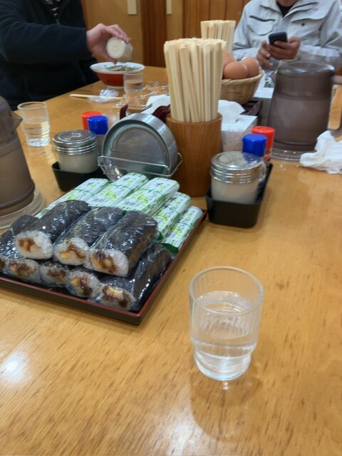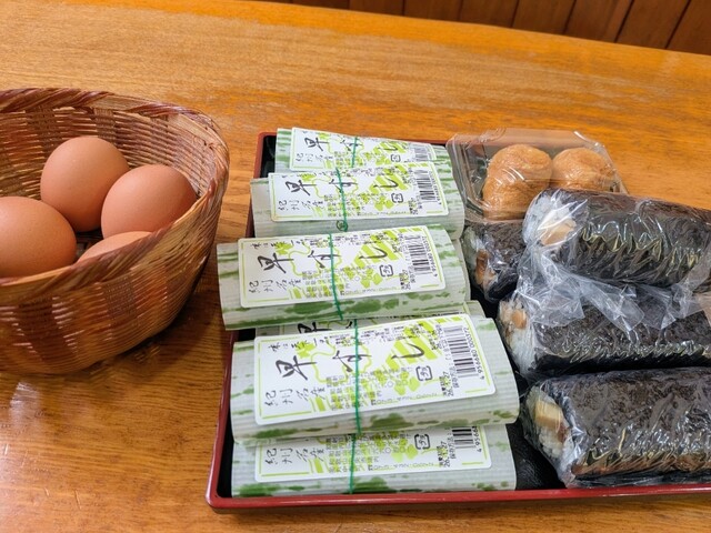 卓上には鯖寿司やいなり寿司、ゆで卵...