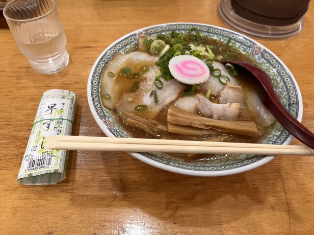 豚骨醤油ベースの中華そば大盛と早寿司を注文。