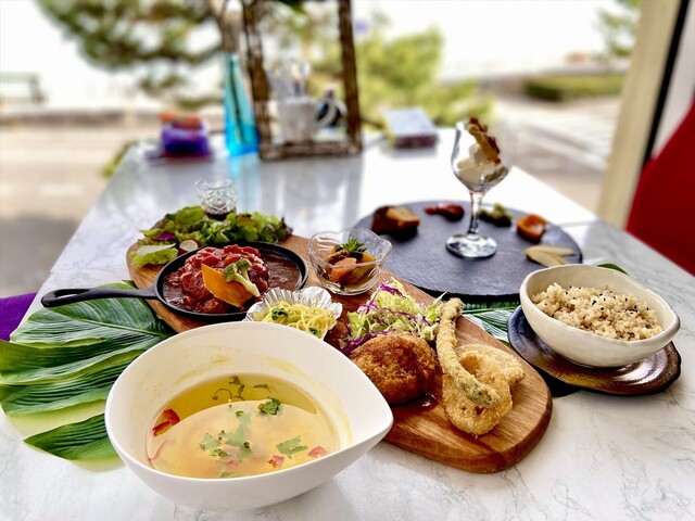 絶景の宝庫“和歌の浦”の美しい景色を眺めながら、体にも優しい野菜たっぷりの彩り鮮やかなメニューをお届けする【和歌の浦カフェ マーレライ】。アート作品が常設展示された店内で、野菜ソムリエによる栄養満点の料理をご堪能いただけます。テラス席を完備しており、席の配置も広く、ソーシャルディスタンスでゆったりと過ごせる当店。日本遺産に認定された心に残る景色とともに、特別なひと時をお楽しみください。