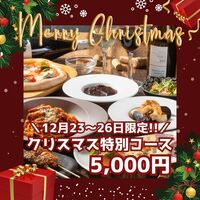 12/23~12/26までの期間限定でクリスマスコースが登場!大切な人と過ごすクリスマスのお食事に相応しい特別コースです。地元漁港直送「足赤海老のグラタンオーブン焼」や「国産牛の赤ワイン煮込み」など、当店自慢の料理を贅沢にお楽しみいただけます。今年のクリスマスは、当店で素敵な一日をお過ごしください! ※お料理のみのため、お飲みものは別途ご注文ください。