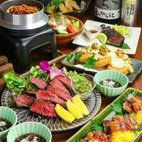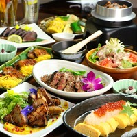 「牛フィレ炭焼き」や「自家製!焼き豚の炭焼き炙り」「釜飯〜牛時雨〜」などボリューム満点の肉料理がたっぷり全10品で満足間違いなし!飲み会、宴会、接待にもぴったりのコース◎さらに生ビールOK!の種類豊富な3時間飲み放題付き♪※L.O30分前