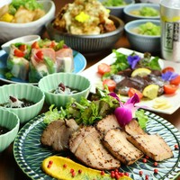 お得にやりたい宴会におすすめ◎「三種の神器生春巻き〜炭焼きベーコン、クリチ、アボカド〜」「かつおのカルパッチョ」「豚ロースの炭焼き」などのお酒にあう肉料理をお得に楽しめる全8品のコース♪さらに生ビールOK!2時間飲み放題付き!プレモルもOKです♪※L.O30分前