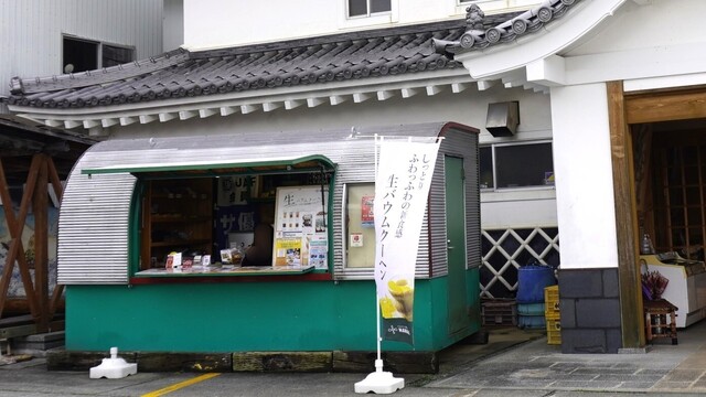 湯浅醤油の脇に屋台みたいなお店が… あーこれが何かこの辺で評価高かったバームクーヘン屋さん?こんな店舗形態なんだ(^^;) 生バウム、水分量が高いから生のような、とのことら... 詳細を見る