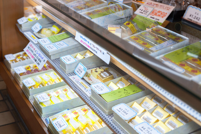 地元に根ざした老舗として知られ、観光客のみならず地元の人々からも支持を集める存在。なかでも看板商品の「デラックスケーキ」は、鈴屋の名を全国に広めた銘菓として知られています。