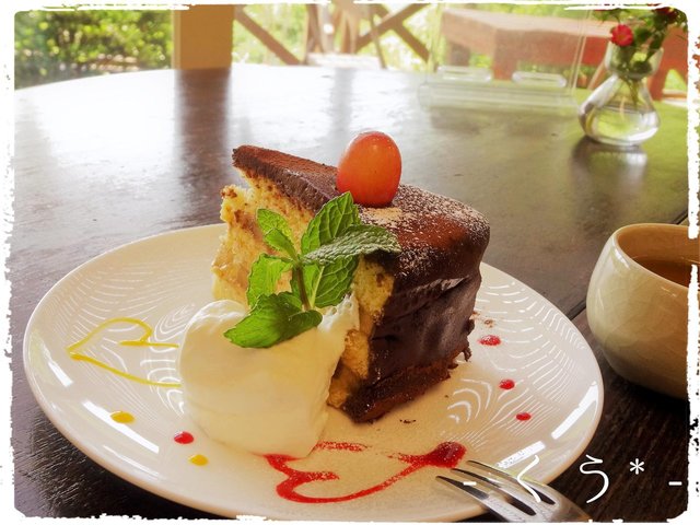 カフェに入ってからはものすごく美味しそうなモンブランに一目惚れ。味はもちろん120てん!栗を生搾りしたクリームに、中は甘さ控えめの栗風味の生クリームになってました。3個はペロリと行けそうでした。