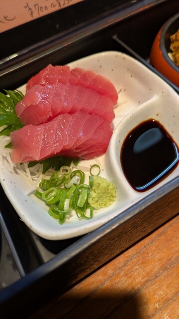 平日昼に来店し、まぐろづくしのメニューを注文した。