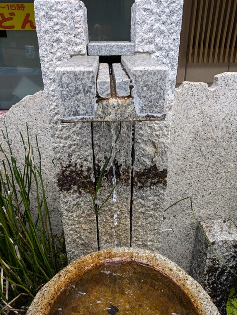 那智山の伏流水を飲みながら待ちます。
