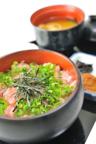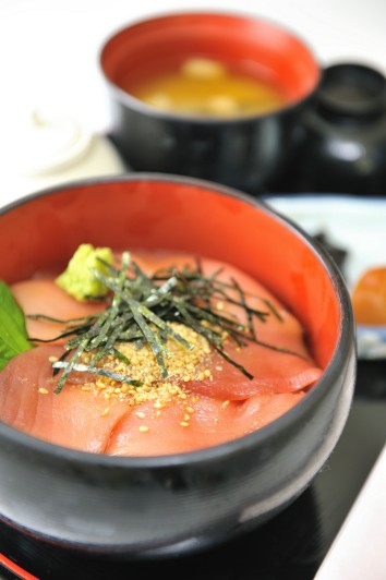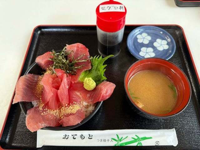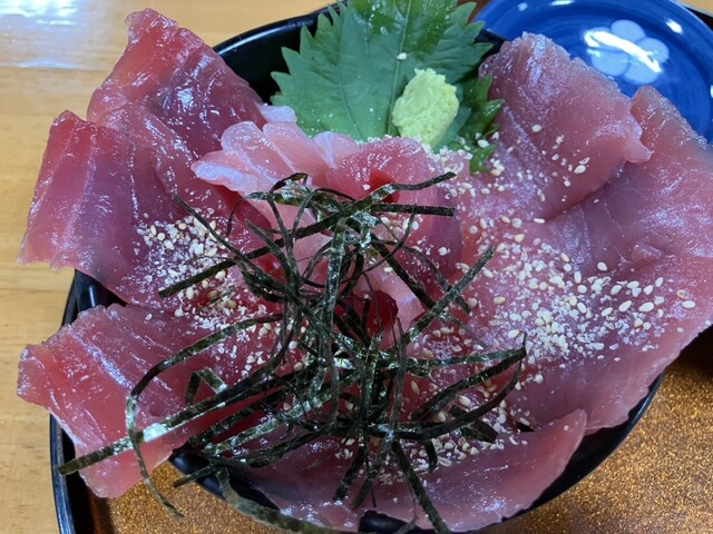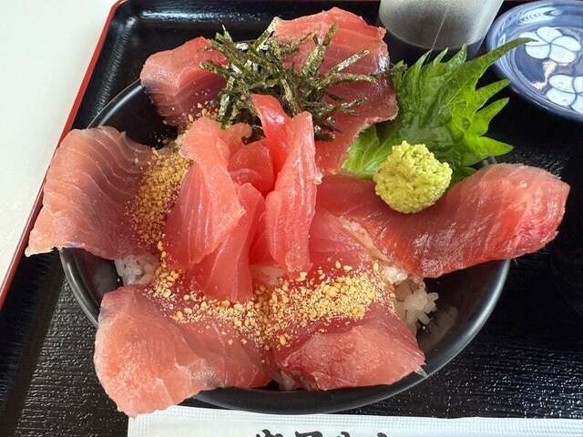 紀州勝浦港で水揚げされた近海生まぐろを使ったお食事を提供しています。『生まぐろ丼』はもちろん、自慢の生まぐろ丼に特製の出汁と和歌山ならではの薬味をかけていただく『まぐろひつまぶし御膳』が人気です。また南紀串本の活け〆本まぐろの中トロだけを使った『中とろ丼』、注文をいただいてから丁寧にトロだけを叩いて作る『ねぎとろ丼』などこだわりのお食事を提供しています。どうぞご賞味ください。