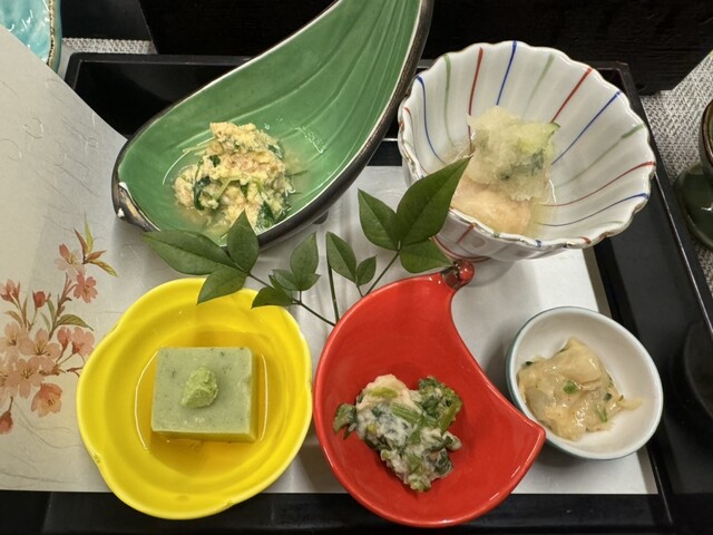 桜豆腐 菜の花白和え あさりみぞれ和え