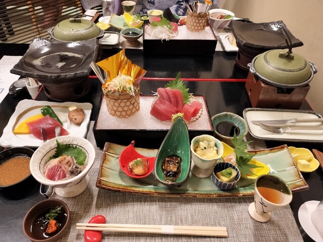 紀州勝浦産のマグロや地元野菜を使った会席料理が愉しめるお宿です。