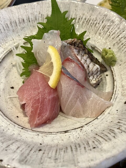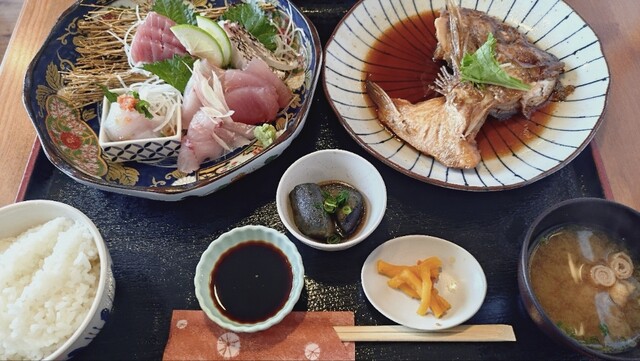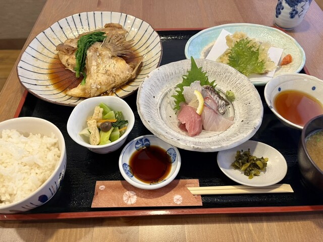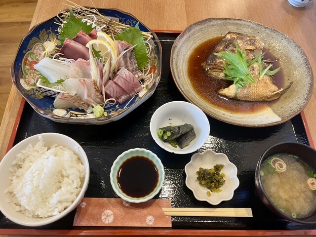 JR串本駅から徒歩約7分の所にある海鮮料理のお店。今年の1月に訪れてとても美味しかったので再訪です。先日、おとな旅あるき旅で三田村さんが訪れてました。祝日の12時15分に到着。5組待ちがあり、名前と電話番号を言って近くで待機することに。45分後に連絡あり。前回は、1番人気の潮騒御膳にしたので、逸魚お造り盛り合わせ御膳2800円を注文。刺身6種盛りと梅まだいのカブト煮と見た目も豪華な御膳。刺身は、地...
