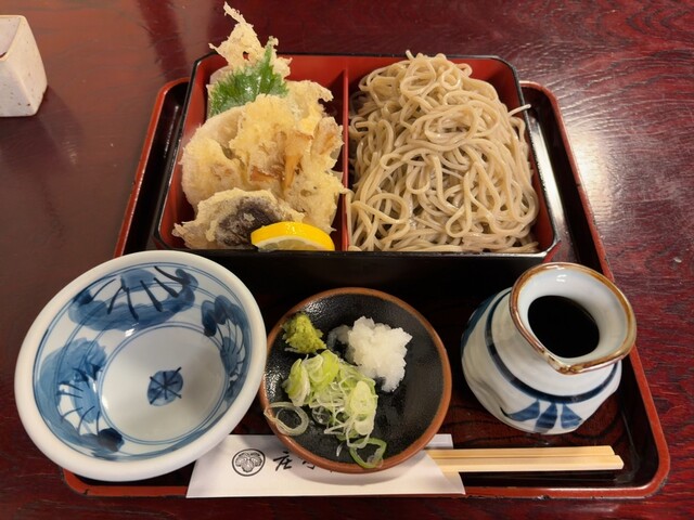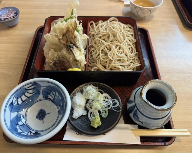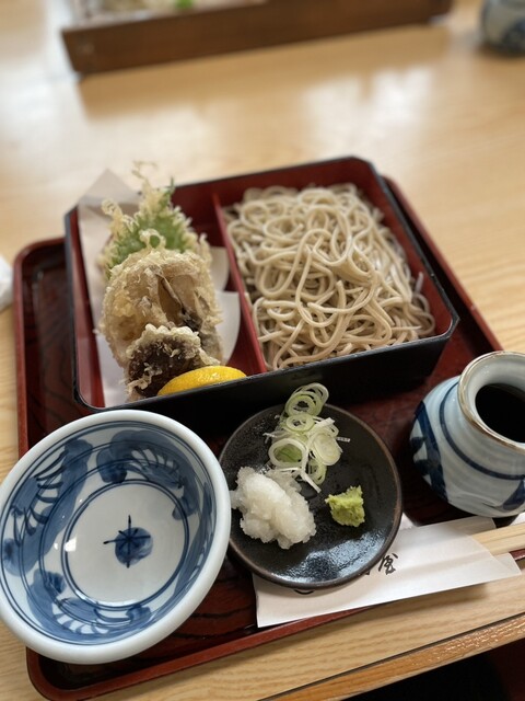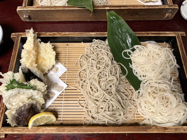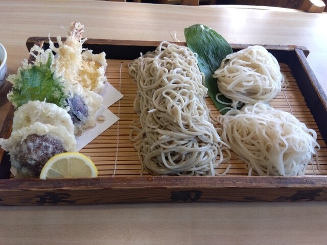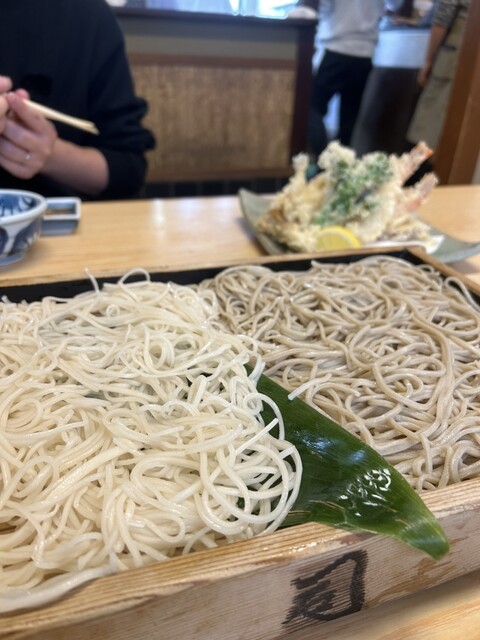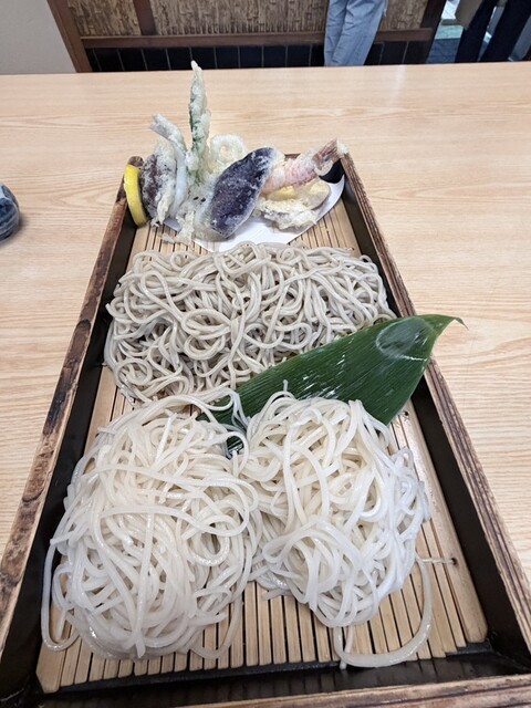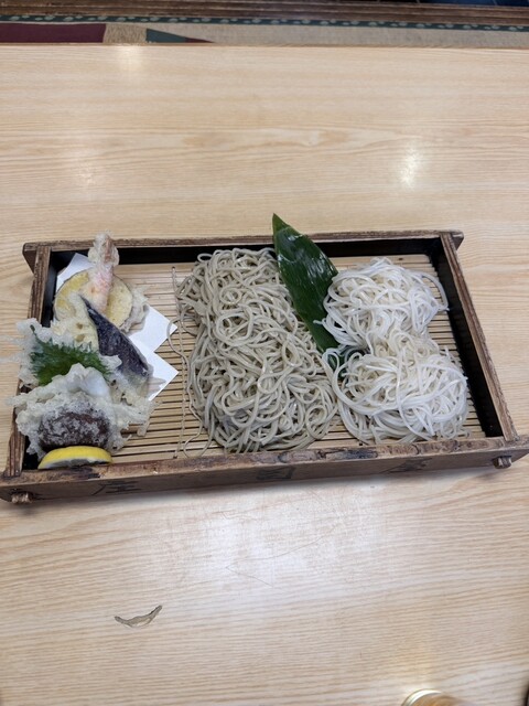 相盛り板天をいただきました。そばはどっちも美味しかったけと、どちらかというとさらしなそばの方が好みかな。つゆとの相性もあり⁈