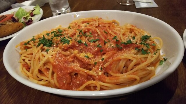 いつもの飲み仲間と四人で。 スパークリングワインも飲み放題に入ってて、かなりお得感ありますね♪ サラダと前菜でかなりのボリュームに不安になります。 パスタはミートソース。... 続きを読む»