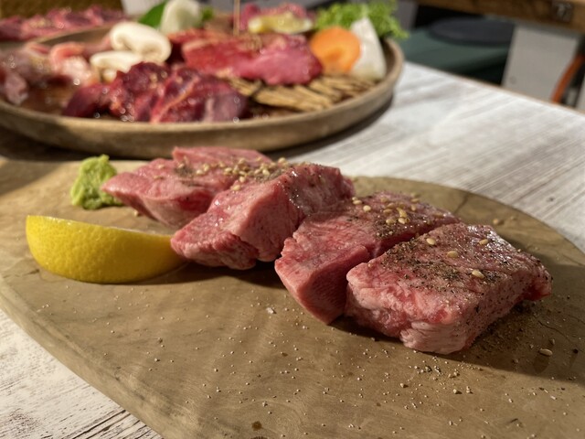 きめ細かく上質な脂が特徴の「山形牛」を、リーズナブルに楽しめるお店です。「山形牛」は尾花沢で育った雌牛のみを使用、等級はA4〜A5ランク、霜降りの美しい風味豊かなおいしさを満喫できます。テーブル12卓、個室2部屋を用意する店内はゆったりと落ち着けるおしゃれな空間。『豪快サガリ塊肉』や『真芯タン』、『5500円コース』などバラエティ豊かなラインナップを用意し、デートや宴会、ファミリー利用などさ...