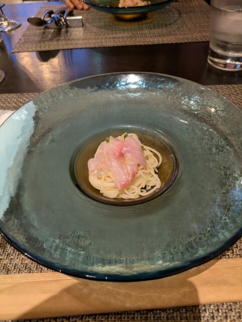 【おすすめ】 奥田シェフ考案のイノベーティブ料理【オイル寿司】、山形県内の魚料理そして肉料理、【ゆで論】パスタに加え県産野菜の前菜やデザートが付いたワンランク上のコースです。 *11:30~15:00(最終入場13:00) *お客様の平均滞在時間90分~120分