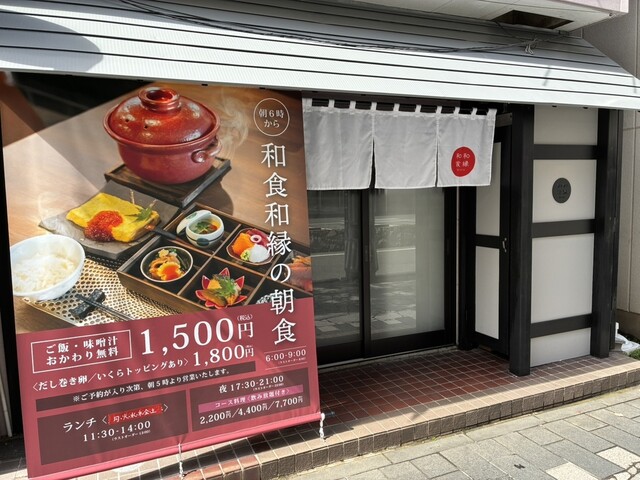 当店の店名は、“和食に縁がある、料理の縁、人との縁を大切に”というところから命名。おすすめメニューの「朝食だし巻き玉子定食」は、和食歴20年以上の店主が焼き上げる絶品です。朝食メニューですがランチでもご提供。また、ディナータイムには山形の地元食材にこだわったコースをご用意しています。山形の地酒をメインにした日本酒も揃っており、宴会などに最適。女子会や大切な方とのお食事にもご利用ください。