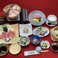 「山懐牛鍋膳+米沢牛おまかせミニステーキ付」(要予約・やまがた夏旅コース)11品