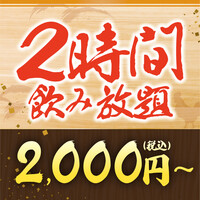 飲み放題付きのコースです。 ・ソフトドリンク飲み放題付き 3,500円(お一人様/税込) ・プレミアム飲み放題付き 5,000円(お一人様/税込)