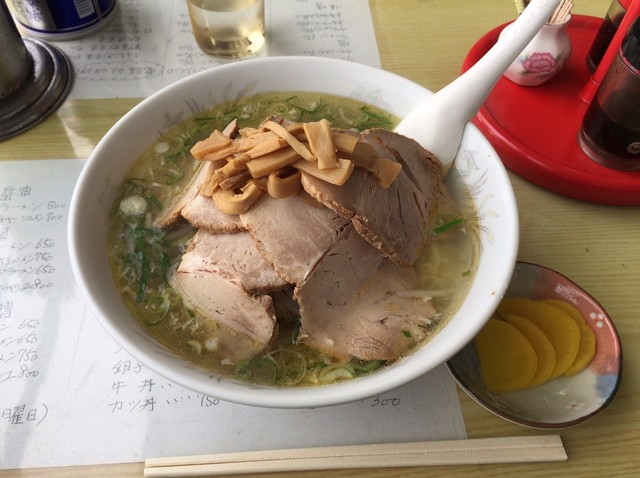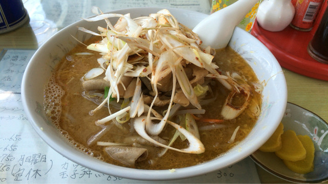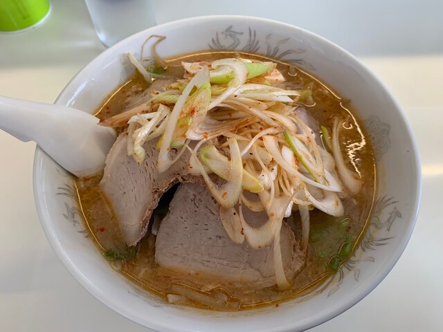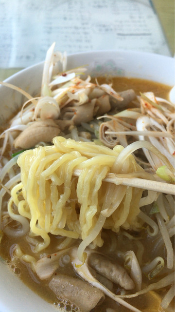 モツ入りのホルモンラーメンをいただきました。丁寧にカットされたいろんな部位のホルモンがどっさり。あつあつのスープは、ピリ辛の風味もありつつ、出汁の効いた味わいです。麺は、しっかりと... 詳細を見る