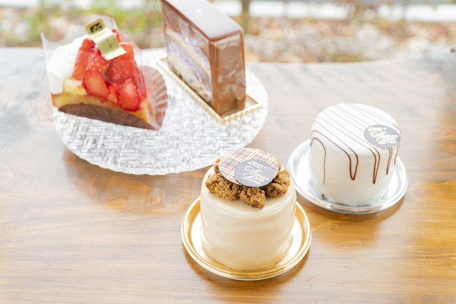 可愛らしいケーキだけでなく、ザクザク食感のクロッシュ(シュークリーム)、北海道産クリームチーズをふんだんに使用したベイクフロマージュ、こだわった焼き菓子や伝統を受け継いだ慈恩最中や福くるみなどの和菓子なども人気です。オシャレなソファや可愛らしい椅子、テラス席などでゆったりとスイーツを楽しいんでいただけます。