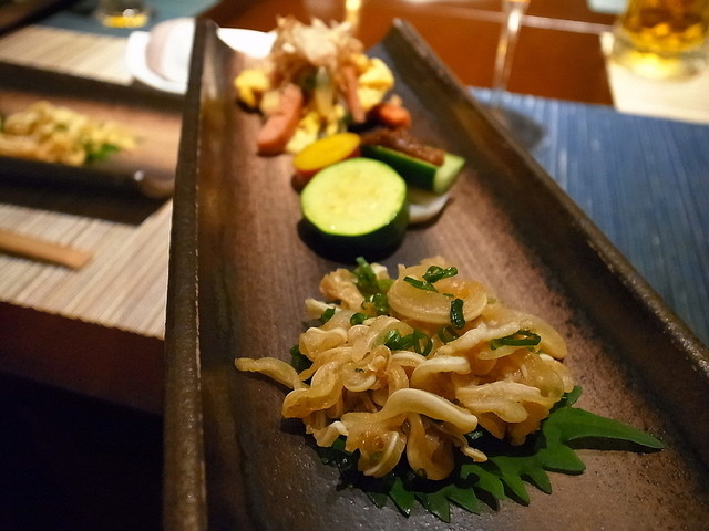 以前から行きたかったお店にようやく訪問。コース料理を頂く。飲み物は事前に許可を頂きワインと日本酒を持ち込み。オーナーは以前まさらっぷで勤務されて独立された方。店内はとても落ち着いていい雰囲気です。沖縄料理をお洒落に洗練して出されており、どの料理も美味しい。お薦めです。