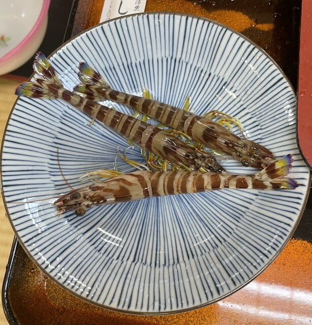 山口県の秋穂(あいお)は車海老の養殖の町。車海老の踊り喰いに挑戦しようと予約してやってきました。民宿には泊まらずにお食事のみの利用です。 お盆期間は、高めのメニューしか頼めなかったので8000円のコースをいただきます。 海の見える和室に通していただき、くつろぎながらいただくのはいいなぁ。 まず... 詳細を見る