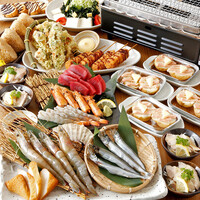 【豊丸コース】天然海老と鮪の刺盛りや浜焼き三種盛合せ・じゃがバター等全8品+2H飲放付4000円8品