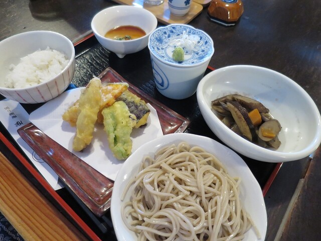 ミニ蕎麦がセットになっていて、温かいのと冷たいのが選べるので冷たいので...