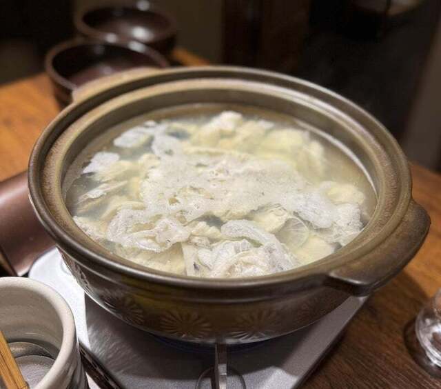 河豚の煮凝り、河豚刺し、河豚のみぞれ和え、河豚の唐揚げ、ふぐちり、雑炊と一通りのコース!