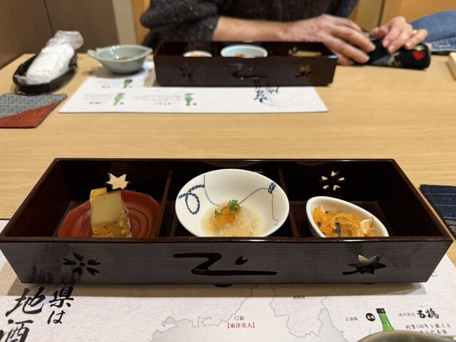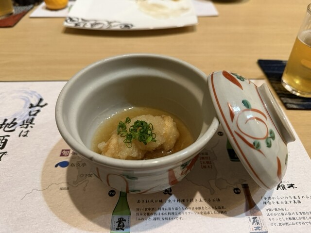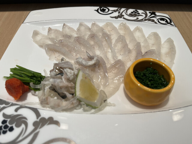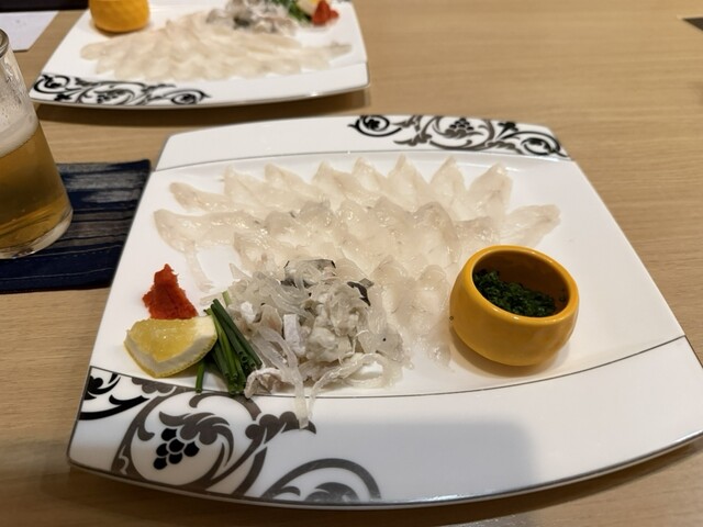 到着後、飲み物を注文するより先に(席に着くなり)煮こごりとフグ刺しが配膳されたからびっくり。