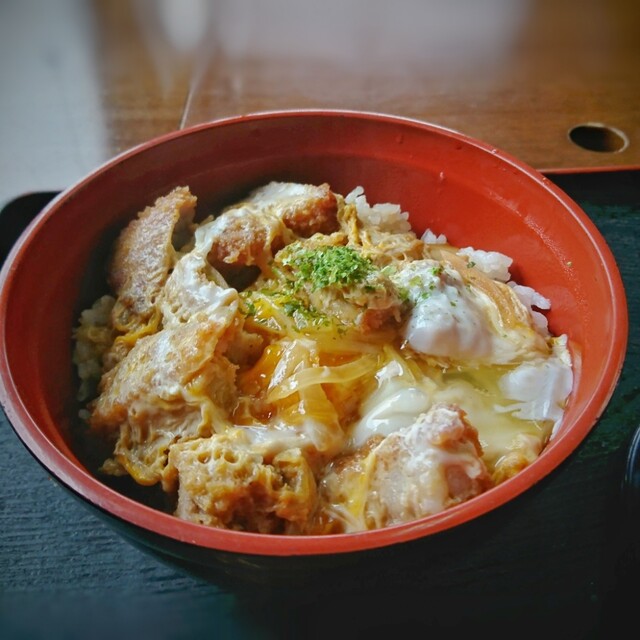 カツ丼セット(並カツ丼 + ミニ温そば or ミニ冷そば)¥1,200-(税込)をミニ温そばで所望。