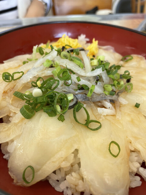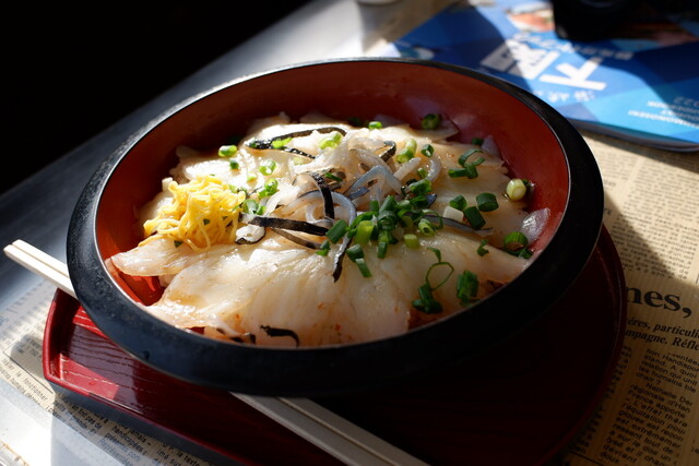 そんな中市場近くにふく刺を使用したユニークな丼があると情報をゲット!
