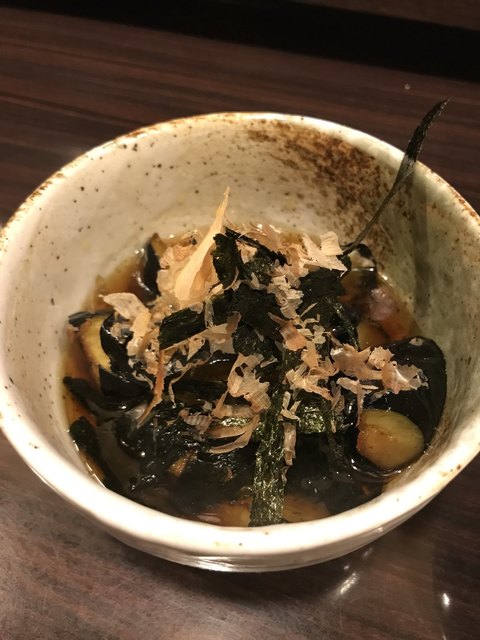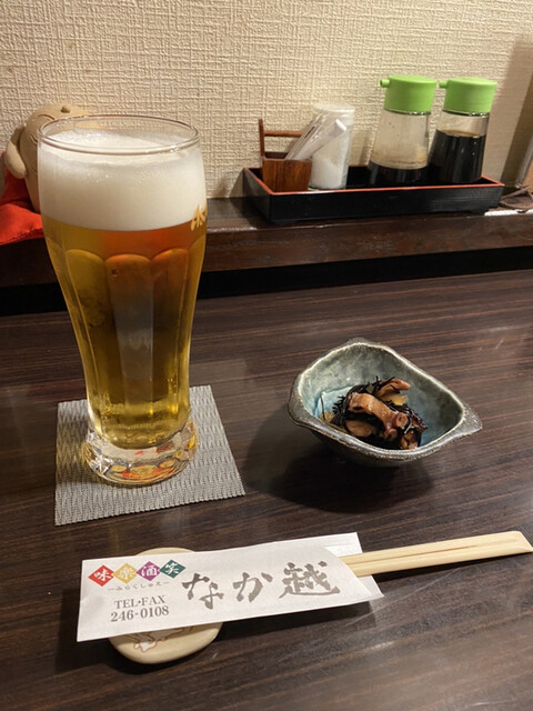 平日の午後6時30分ごろに伺うと、小さな店内はほぼ満席でした。予約して伺ったのですが、カウンターしか空いてないと言われ、行ってみて納得、テーブルは2卓しかなく既に宴会が始まっていました。