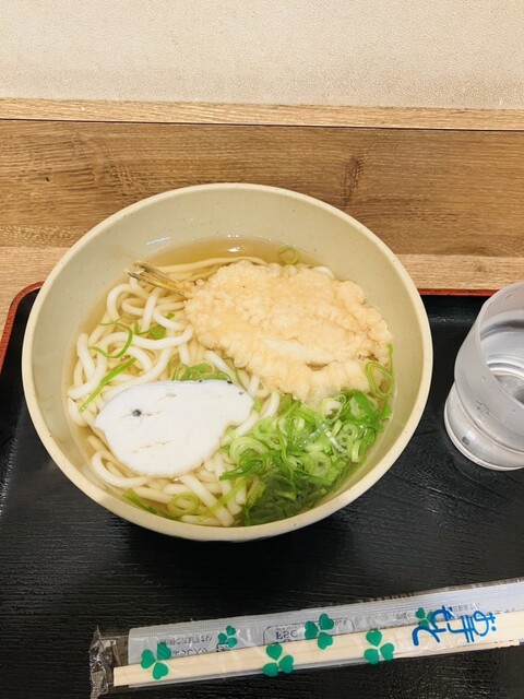 人生初の下関での朝食に、ふく天うどんをいただましたϵ( 'Θ' )϶
