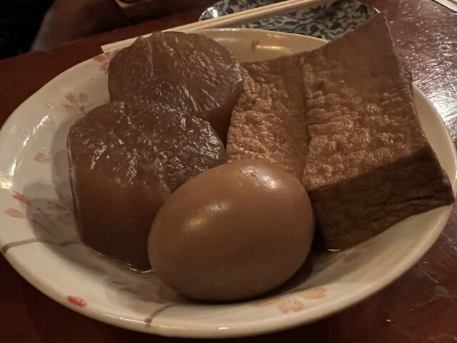 次の会まで時間があったので、16時ごろ訪れました。普通に開店してました。既にお客さんがおりました。せんべろがあり、飲み物は1品、食べ物は3品出てきます。おでんは、2つ選ぶので、大根... 詳細を見る