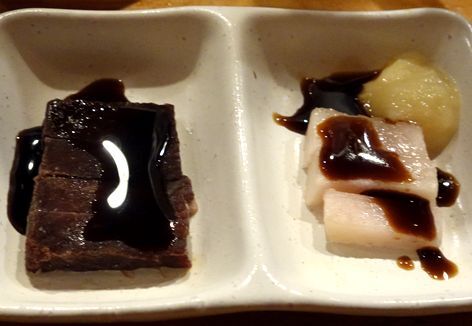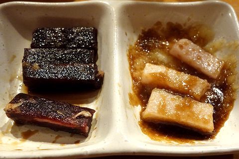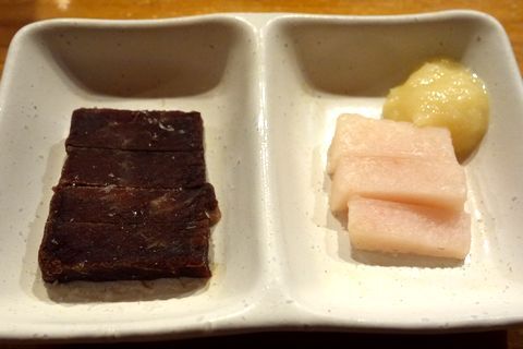 ちりめんじゃこ、鯨の赤身と皮の小盛、鯨ベーコン