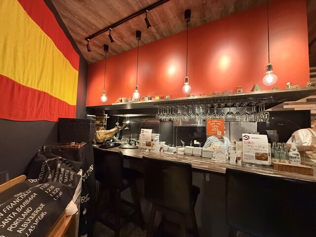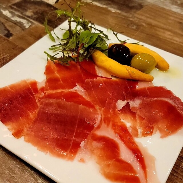 原木から切り出すイベリコ豚の生ハム(純血イベリコ・ベジョータ)など他にはないこだわりのスペイン料理やスペインのお酒をお気軽に味わっていただけます。ちょい飲みや二次会利用も大歓迎です!インボイス制度登録店!